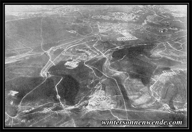 Die Festung Verdun mit ihren östlichen Außenforts. Flugzeugaufnahme vom 22. Mai 1916. |