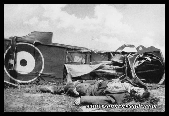 Im Juli 1918 bei Douai abgeschossener englischer Kampfflieger. |