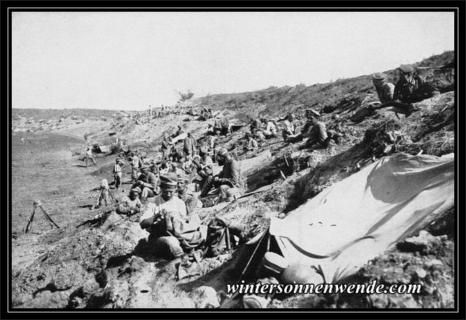 Sonnige Putz- und Flickstunde in einem deutschen Infanterieabschnitt in geschützter Stellung bei Panciu. (Rumänien.) |