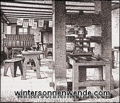 Von Gutenbergs Aufenthalt in Mainz sind wir noch weniger als von seinem Aufenthalt in Straßburg unterrichtet. Etwa im Jahre 1450 entschloß er sich, seine neue Kunst, die er an Donaten und Kalendern reichlich erprobt hatte, auch an der Herstellung eines ganz großen Werkes, der Bibel, zu zeigen.