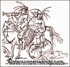 Da Hoffmanns Biograph Hitzig dies Weinhausleben aufs höchste mißbilligte, teils aus moralischen Gründen, teils weil er sich selbst dadurch vernachlässigt fühlte, hat er uns über Art und Zusammensetzung dieses Stammtisches nichts Näheres überliefert. Die Sage aber hat um den Kreis bei Lutter und Wegner ein so krauses und phantastisches Rankenwerk gewoben, daß wir heute Wahrheit und Dichtung nicht mehr zu trennen vermögen. Künstler und Schauspieler mögen in erster Linie Teilnehmer gewesen sein, daneben einige literarisch interessierte Offiziere wie der Freiherr Ferdinand Moritz von Lüttwitz, Ludwig August von Rebeur, Friedrich Wilhelm d'Elpons und Eugen Baron von Vaerst, der später durch seine "Cavalierperspektive" und seine "Gastrosophie" einen Namen erhalten sollte. Wie es sich wohl von selbst versteht, ging es in dieser Runde äußerst lebendig und ausgelassen zu, und Hoffmann als Seele des Ganzen übertraf sich selbst und versetzte durch seine sich überstürzenden witzigen Einfälle und eine unerhörte Schlagfertigkeit die an sich schon hinreichend animierte Gesellschaft in tobendes Entzücken. An der Einzigartigkeit der mit wahrem Geist und Humor durchsetzten Atmosphäre dieser tollen Symposien kann nicht gezweifelt werden. Unbegreiflich aber ist es, wie Hoffmann bei solchem Leben zu seiner geradezu erstaunlichen literarischen Produktion dieser Berliner Jahre kommen konnte. Vormittags arbeitete er, wie sein Biograph erzählt, auf dem Kammergericht oder zu Hause an den Akten und erledigte mit musterhafter Pünktlichkeit alle Berufsarbeiten. Nachmittags schlief er oder ging spazieren, den Abend und die Nacht verbrachte er in seiner Weinstube. Sehr häufig, eine Zeitlang täglich, war er mittags und abends in Gesellschaft, aber nie versäumte er, so spät es auch sein mochte, noch zu Lutter zu gehen, um dort den Morgen zu erwarten, denn sich früher nach Hause zu begeben, war ihm unmöglich. Wann er aber seine zahlreichen Märchen und Geschichten bei solcher Tageseinteilung geschrieben hat, ist und bleibt ein Rätsel. Daß jedoch sein Körper und seine Gesundheit bei einer derartigen Inanspruchnahme aller Kräfte nicht widerstandsfähig bleiben konnte, liegt auf der Hand. Bereits im Frühling 1819 erkrankte er schwer an einem Unterleibsleiden mit gichtischen Anfällen. Sein Arzt riet zu einer Erholungsreise in die Sudeten, die Hoffmann im Juli antrat und von der er gesundet im Herbst wieder nach Berlin zurückkehrte. 1820 trat er in die von dem witzigen Philologen Philipp Buttmann gegründete "Gesetzlose Gesellschaft" ein, welcher neben Gneisenau, Schleiermacher, Hegel, Savigny noch viele andere bedeutende Männer angehörten. Ebenso war er Mitglied der von Rellstab und Berger gegründeten jüngeren Liedertafel, für die er vier Männerchöre komponiert hat. Bereits am 3. August 1816 hatte seine Oper "Undine", deren Textbuch kein anderer als Fouqué selbst verfaßt hatte, im Berliner Schauspielhaus ihre erste Aufführung erlebt. Vierzehnmal war [105] sie mit stets wachsendem Erfolg aufgeführt worden, als am 29. Juli 1817 das Schauspielhaus abbrannte und mit ihm die herrlichen von Schinkel gemalten Dekorationen und Kostüme. Eine Wiederaufführung der Oper fand nicht statt. Außer einer Begleitmusik zu Fouqués Festspiel "Thassilo" (1815) sowie der Übersetzung des Librettos zu Spontinis Oper "Olimpia" hat Hoffmann nichts weiter für das Theater geschrieben. Um so umfangreicher ist seine literarische Produktion. 1816 erschien der zweite Band seiner Elixiere des Teufels, 1817 kamen seine Nachtstücke, 1819 die Seltsamen Leiden eines Theaterdirektors, das Märchen Klein Zaches, ebenso der erste Band der Serapionsbrüder, dem bis 1821 der zweite, dritte und vierte Band folgten, heraus. 1820 erschien der erste Teil der Lebensansichten des Katers Murr nebst fragmentarischer Biographie des Kapellmeisters Johannes Kreisler, nicht nur wegen seines autobiographischen Charakters, sondern wegen der meisterhaften Darstellung eines der wertvollsten und eigenartigsten Werke unserer Literatur. Der zweite Band erschien zwei Jahre später, während der geplante dritte Teil unterblieb. 1821 trat das Capriccio Prinzessin Brambilla, Hoffmanns künstlerischste und kühnste Leistung, ans Licht, der 1822 noch der Meister Floh folgte; er wurde wegen eines satirischen Kapitels, das die Demagogenverfolgungen ironisch beleuchtete, noch während des Druckes konfisziert und durfte erst nach Ausmerzung der betreffenden Stellen erscheinen. Hoffmann kam dadurch in eine sehr bedrängte Lage, die mit großer Wahrscheinlichkeit seine Entsetzung vom Amte zur Folge gehabt hätte, wenn ihn nicht seine Krankheit und sein bald darauf eintretender Tod davor bewahrt hätten. Neben diesen Hauptwerken hatte er noch eine stattliche Zahl kleinerer Erzählungen geschrieben, die, hoch bezahlt, in den damals beliebten Taschenbüchern erschienen sind. Darunter befinden sich die noch heute allgemein gelesenen und sehr berühmt gewordenen Geschichten Meister Martin und seine Gesellen, Das Fräulein von Scuderi, Der Kampf der Sänger, Doge und Dogaresse und viele andere. Im Januar des Jahres 1822 begann Hoffmann zu kränkeln, und bereits Anfang Februar verriet sein Zustand, daß ihn eine Krankheit erfaßt hatte, die kein Arzt zu heilen vermochte. Mit jedem Tage versagte ein Glied nach dem andern den Dienst. Füße und Hände starben ab, ebenso einzelne innere Organe. Als am Tage vor seinem Hinscheiden die Lähmung bereits bis zum Halse vorgeschritten war, glaubte sich der arme Kranke völlig genesen, weil er keine Schmerzen mehr spürte. Bis kurz vor seinem Ende diktierte er, da sein Geist völlig ungebrochen war, einem Schreiber, der gleichzeitig den Krankendienst bei ihm versah, seine Erzählungen in die Feder. Als sich am Morgen des 25. Juni die ersten Anzeichen der Auflösung zeigten, forderte er überraschenderweise plötzlich den Schreiber, um ihm an der in Arbeit befindlichen Erzählung "Der Feind" weiterzudiktieren. 