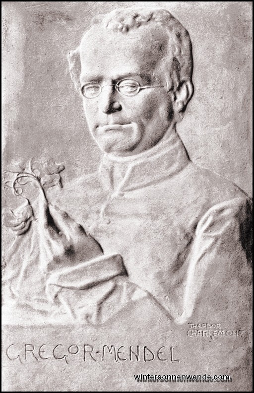 Erb- und Rassenforschung geworden. Mendel starb als Abt seines Klosters. Tonrelief von Theodor Charlemont.