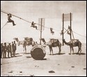 Einer der Lieferwagen des einzigen deutschen Bierbrauers in der italienischen Besitzung Libyen begegnet einer Kamelkarawane mitten in der Wüste. |