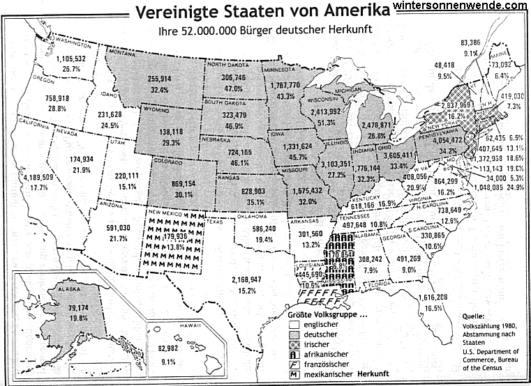 ![]() One of the greatest areas of interest among the German-Americans is gymnastics, whose social function as expressed in the various clubs and groups goes far beyond mere exercise. For a long time, gymnastics clubs contributed to a unification, albeit a loose one, of the German immigrants, though they lacked an umbrella organization. By the beginning of the First World War, another amalgamation, the "Deutsch-Nationale Bund", represented an association of some 10,000 clubs in 45 states with a total of 2.6 million members, making it the largest ethnic organization in America. Thanks to its scholarly elite, Cincinnati was the stronghold of intellectual life in America in the late 19th century. In 1890 57% of the 300,000 registered inhabitants of this city are Germans. St. Louis and Milwaukee were also cities with a strong German population, as was the rapidly growing city of Chicago, which the London Times called "America's German miracle". Around 1900, the German share in American economic life was fully one-third. In the vicinity of Chicago there were more than 100 towns with names such as Strassburg, Vienna, Baden, etc. A lesser-known fact is that the largest "German" city at that time was New York, which had a larger German population than Munich. Around 1900 there were German enclaves in virtually every state of the Union, and as a survey showed, the German immigrants continued to be the group most desired by the communities as new citizens! In California, San Francisco was the intellectual center of the German-Americans until World War One. In 1901 a copy of the Goethe-Schiller-Memorial that stood in front of the Weimar National Theater was erected in Golden Gate Park. Commenting on its unveiling, Charles Bundschuh wrote: "Proud and noble, Germany's most magnificent monument stands on the Pacific coast as the most profound glorification of the Germanic spirit, the spirit to which this developing American nation owes so immensely much." Even as late as 1911, the American Congress gave a copy of the Steuben Monument in Washington as a gift to the German Emperor and the German people, "as a symbol of unwavering friendship" between the two peoples! In 1913 a great Wagner Festival, involving more than 1,000 singers, took place in New York. To the Americans, Germany was synonymous with Goethe, Beethoven, Mozart and Bach until just shortly before the war. Americans went to study in Göttingen or Heidelberg, and "all boys and girls read the German poets and philosophers." The German immigrants helped shape the New World in every aspect of life. "He builds, tills the soil, tends the forests, fights, discovers, collects, develops, teaches, plants and heals. He makes the German language a symbol for entire professions. He opens up vast wilderness regions, introduces entire industries, founds the greatest banking and merchant houses, and plays an enormous role in academe and in medicine. Among his ranks there are titans of business, economic leaders and the founders of dynasties such as Studebaker, Wurlitzer, Heinz, Steinway, Villard, Guggenheim or Strauss, such as Spreckels (the 'Sugar King'), Weyerhäuser (the 'Lumber King'), or Kreiser (the 'Cattle King' of the USA)." The Brooklyn Bridge in New York, built by Johann Augustus Roebling (Röbling) and his son, may be regarded as a cultural symbol and an emblem of the German spirit transplanted into the New World. Gustav Lindenthal and Ottmar Amman are two other important pioneers of bridge construction. Ottmar Mergenthaler invented the Linotype system, which first permitted the cost-effective mass printing of newspapers and books - a marvel of printing technology. In the service of "General Electric", the inventor Charles Proteus Steinmetz became a "modern Jupiter, hurling lightning bolts". Cyrus Eidlitz built the New York Times building, Henry Hardenbergh the old Waldorf Astoria, Henry Koch the City Hall of Milwaukee. The iron cupola of the Capitol in Washington was designed by Thomas U. Walter. Rudolph Dirks created the first American comics ("The Katzenjammer Kids", based on "Max und Moritz"), and Charles Schultz made the "Peanuts" world-famous. Oscar Hammerstein I. founded six opera houses, and Oscar Hammerstein II. wrote the musicals "The King and I", "South Pacific" and "Oklahoma". From all this, one may conclude that the Germans were active primarily in the cultural and creative branches, while politics and the press, which were governed by high finance, were shaped by Jews and Anglo-Saxons - as are almost the entire media nowadays. The Germans were credited with the talent to "get things going", to find new methods, solutions to problems, and to be able to adapt quickly to any given situation. On the other hand, this unsolicited admiration was often accompanied by a considerable portion of envy. Even though they were particularly esteemed as farmers and artisans, the Germans were rejected and not infrequently the target of open enmity in the predominantly Anglo-Saxon regions of the country. The trait of clumsy helplessness - the complex suffered by a newcomer from an insignificant little principality, by a plain honest fellow who does not have the self-assurance of an Englishman - increased the rejection he was made to feel, rather than reducing it. Anglo-Saxons have only ever respected strength! The aforementioned Franz Lieber won the hearts of generations of American students for the German arts. He also published the New World's first encyclopedia. The impressive pictures painted by Albert Bierstadt from Solingen brought the "Wild West" to life, and Emanuel Gottlieb Leutze's "George Washington Crossing the Delaware" was to become America's most famous historical painting.